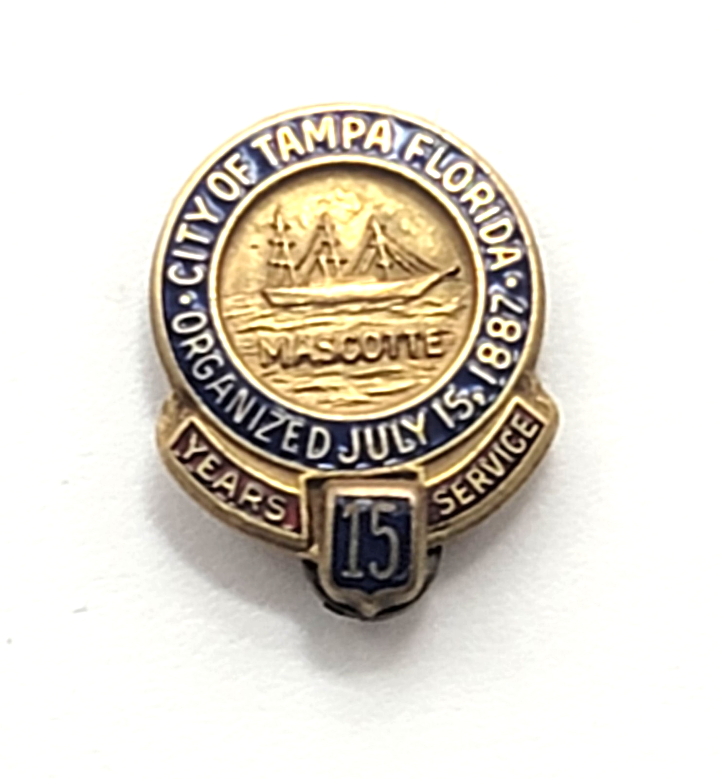 City of Tampa Florida 15 Year Service Pin 1/10 GF Employee Award Mascotte Ship
