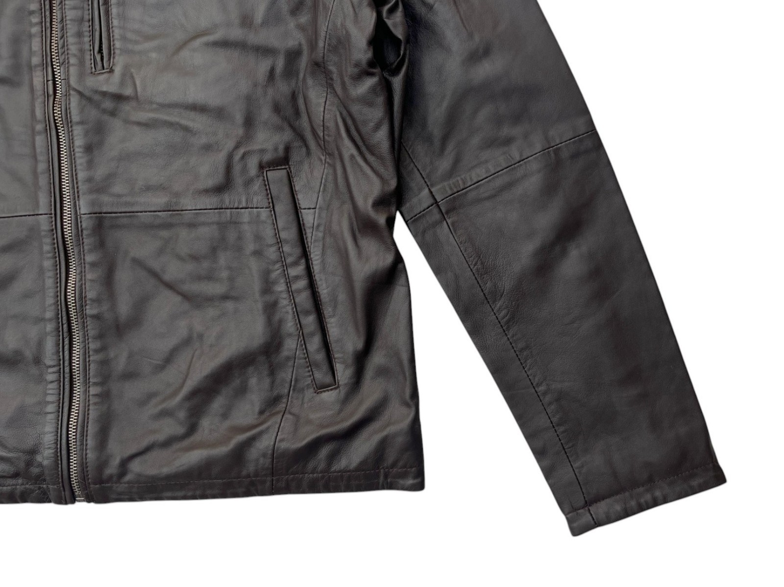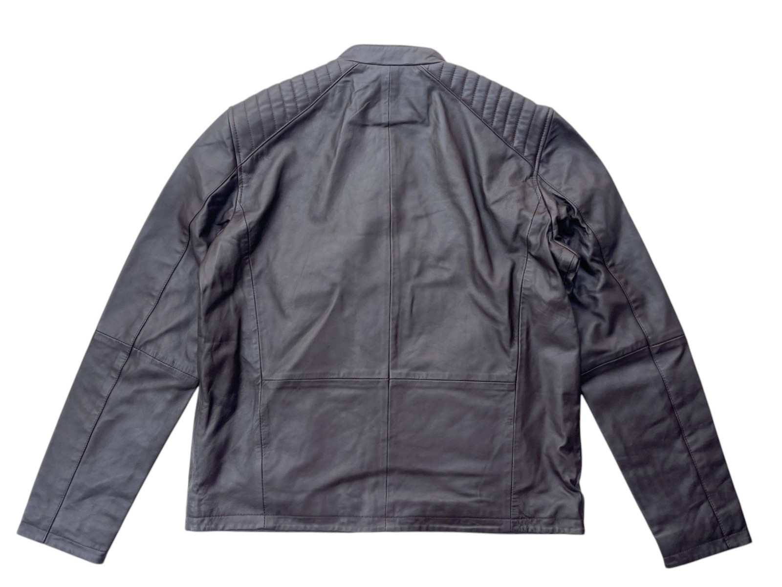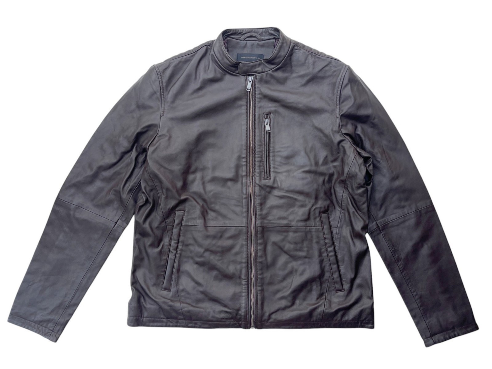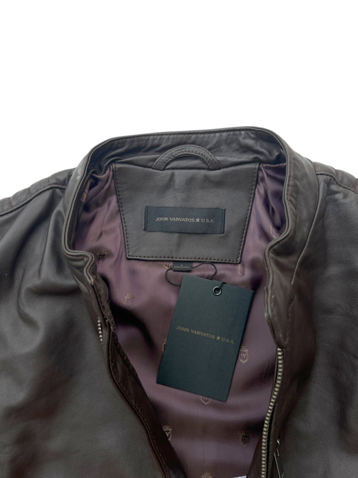 New John Varvatos Mens L Dark Brown Racer Moto Genuine Sheep Leather Jacket $698