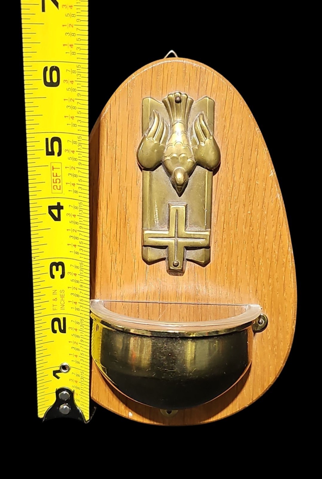 VTG Goldscheider Germany Holy Water Font Brass Dove Cross Wall Mount Catholic