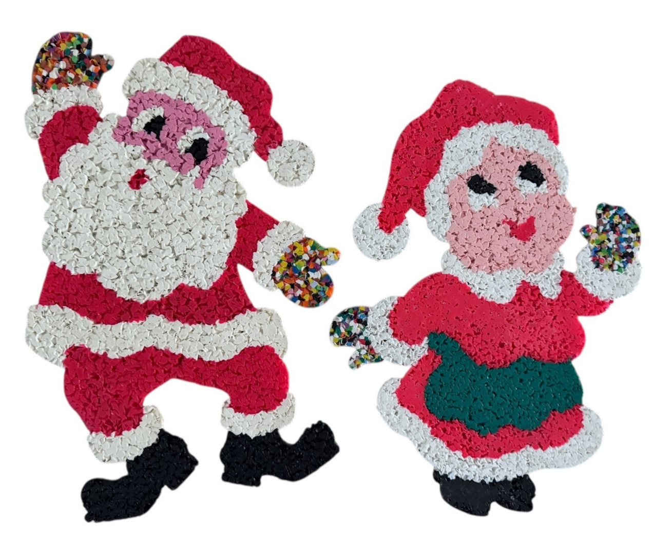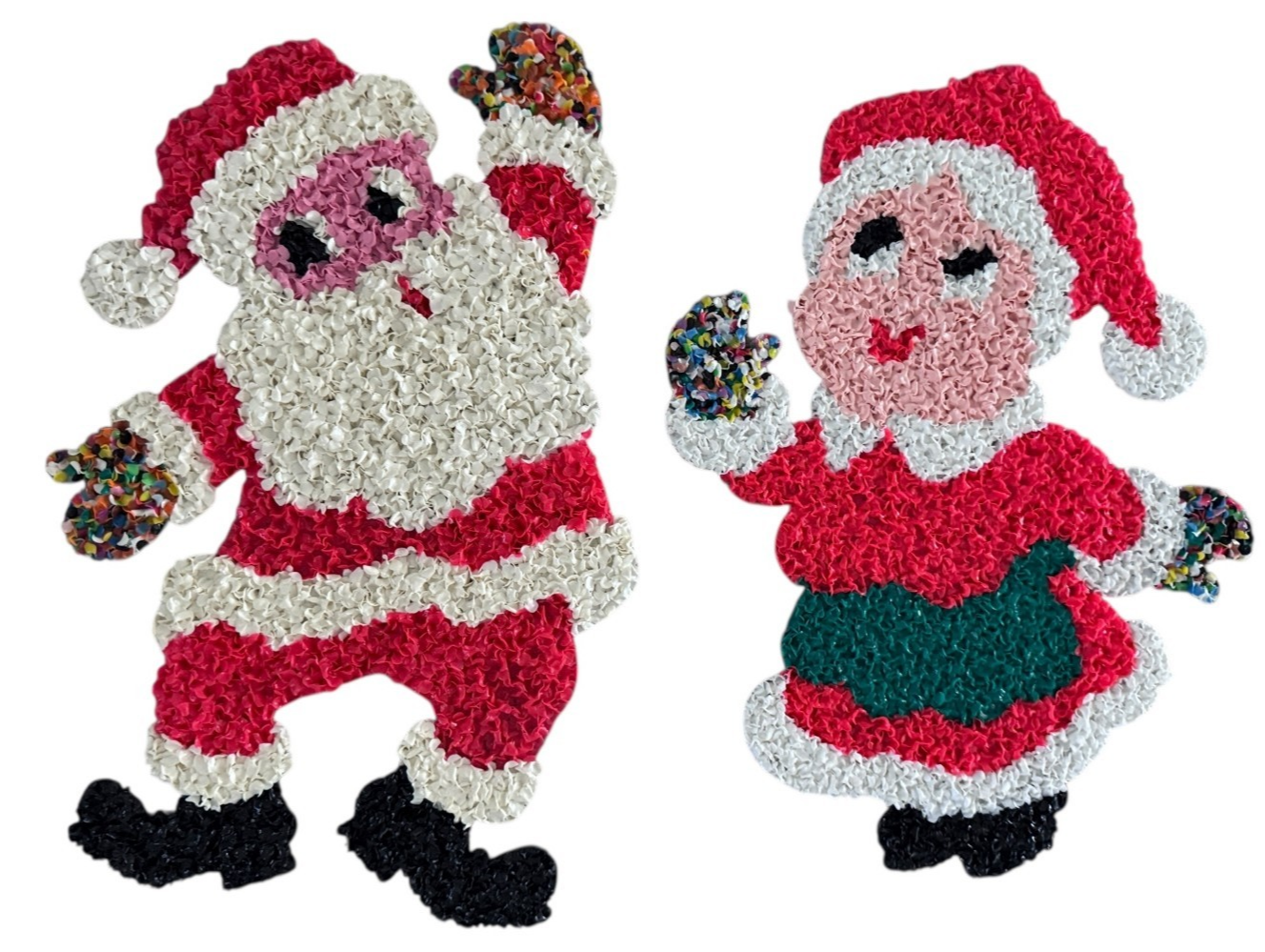 Vintage Melted Plastic Popcorn Christmas Mr. and Mrs. Santa Claus Decoration
