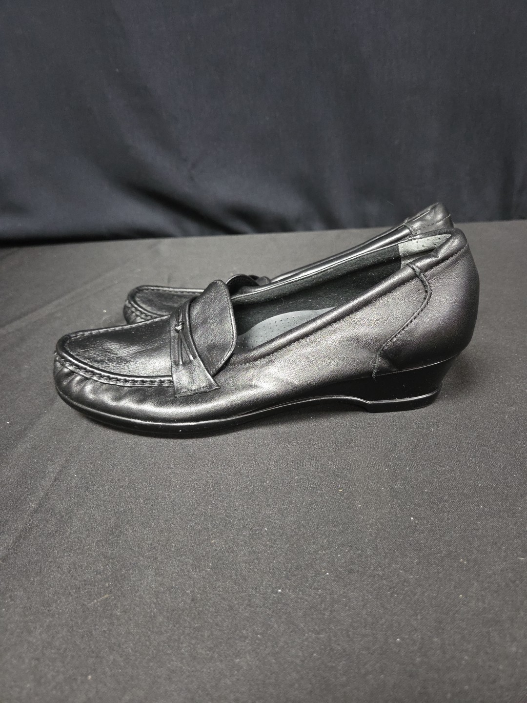 SAS Tripad Easier Slip On Wedge Black Leather Loafers Women's Size 8 M NWOT NEW. Shipped with USPS Ground Advantage.