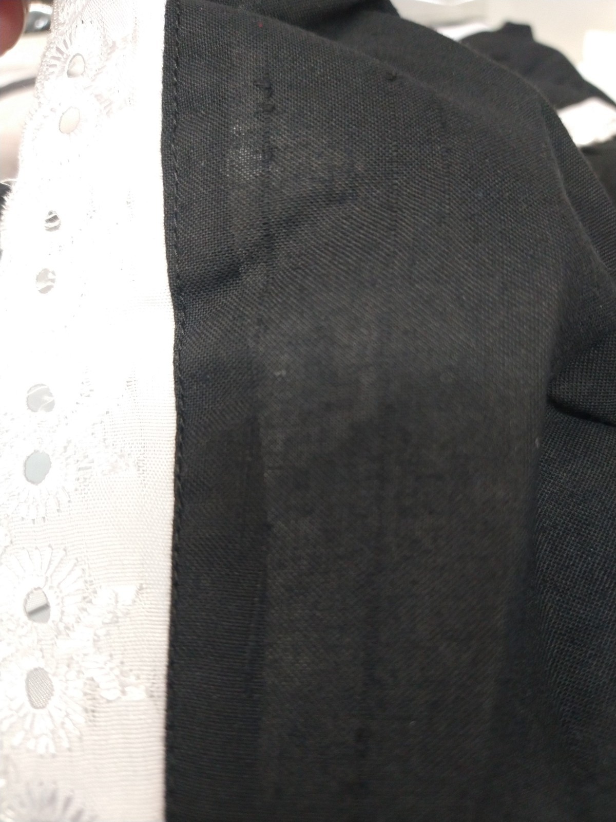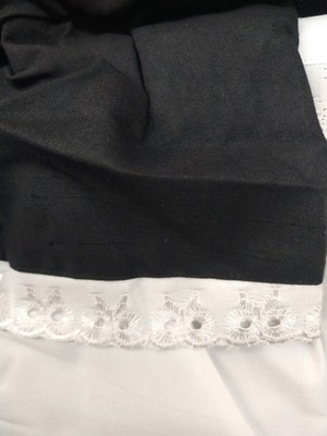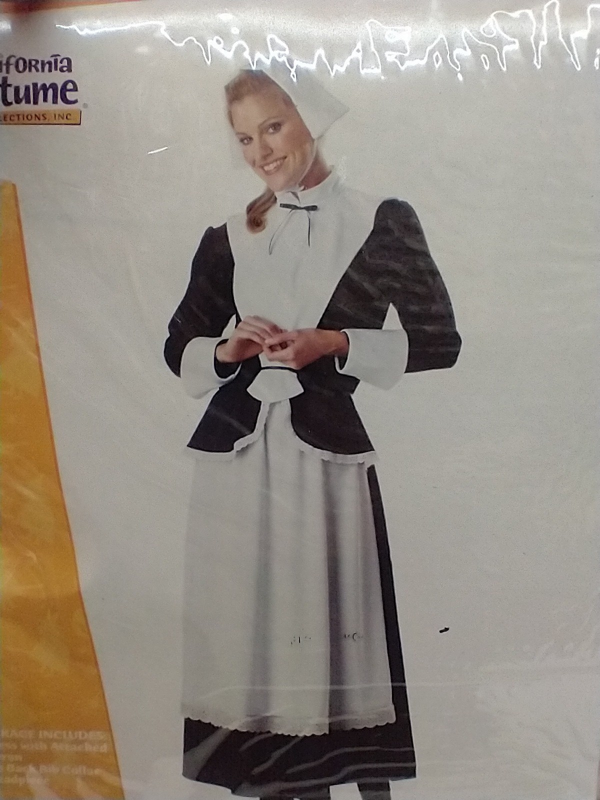 Adult Pilgrim Woman Costume. Adult - Size: XL. White and Black. Fabric is stiffer, expect wrinkles / creases from being folded. DOES NOT