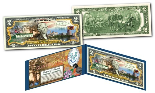 See the U.S.A. as never before with the All-New U.S. $2 Statehood Bills Currency Collection, a spectacular presentation. This all-new collection of Statehood $2 Bills honors each of our 50 states, and comes packaged in a premium display folio that shows both your States bill and the highly customized official States Certificate of Authenticity. You'll enjoy glimpses of each state's most fascinating sights, symbols, and stunning natural beauty; adding to the effect, the custom artwork also includes imagery inspired by the collector-favorite State Quarters and U.S. Parks. Discover breathtaking American beauties with a rare currency collection that also honors our national parks with brilliant color. While $2 Bills are genuine U.S. legal tender, they make up fewer than 1% of all currency produced today, and these rarely-seen bills are coveted collector favorites. The reverse of each statehood bill features the famous depiction of the signing of the Declaration of Independence. Your bills arrive in crisp Uncirculated Condition. Celebrate these magnificent works of art of America's history.
