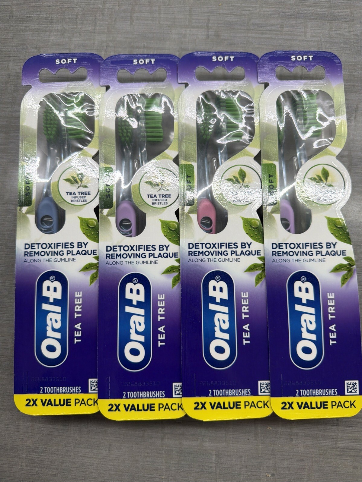 4x Oral-B Tea Tree Soft Manual Toothbrush Remove Plaque Along The Gumline 2xpack
