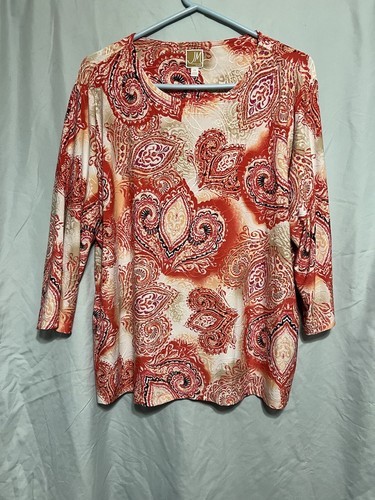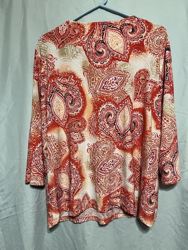 JM Collection 3/4 Sleeves Women’s 2X White With Red Design Raised Stitching