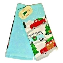 Nicole Miller Kitchen Towels Retro Travel Van Woody Wagon Red Truck Winter 2-pc