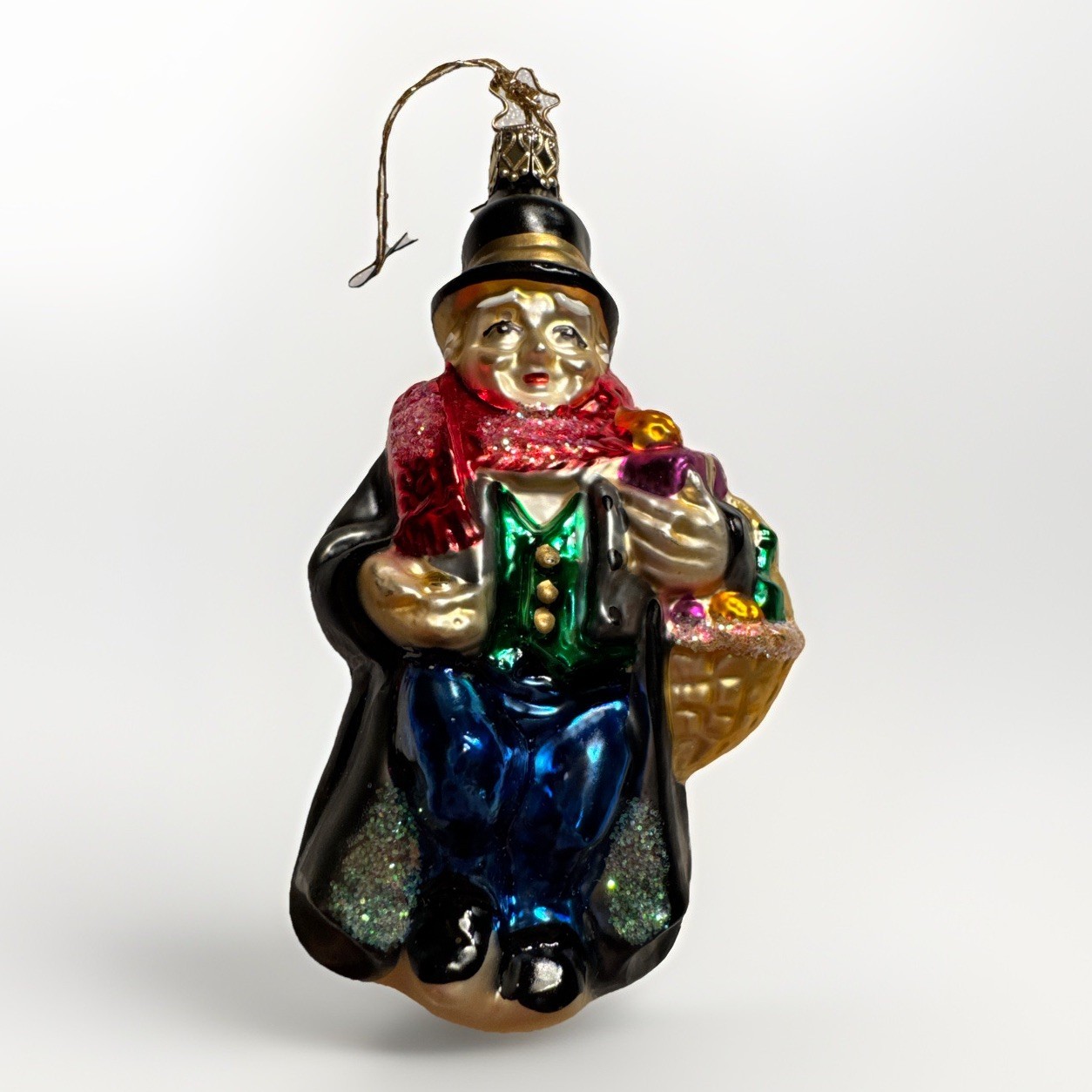 The Old World Christmas Inge Glass Ornament depicting Dickens' Scrooge is a vintage collectible item perfect for Christmas decor. This hand-blown glass ornament features an all-over pattern with intricate details of the character Scrooge from the Dickens collection. Ideal for collectors or as a unique gift, this decorative ornament adds charm to any holiday display, showcasing a touch of nostalgia and literary flair.