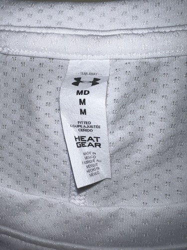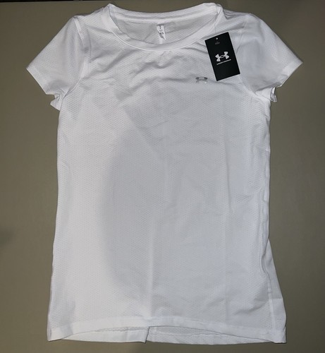 Elevate your activewear game with this Under Armour Heat Gear Fitted Women's Short Sleeve Top in size M. Designed for women, this athletic top features a slim fit and is made from high-quality materials to ensure maximum comfort during your workout. The white color and Under Armour branding make it a stylish addition to your activewear collection.