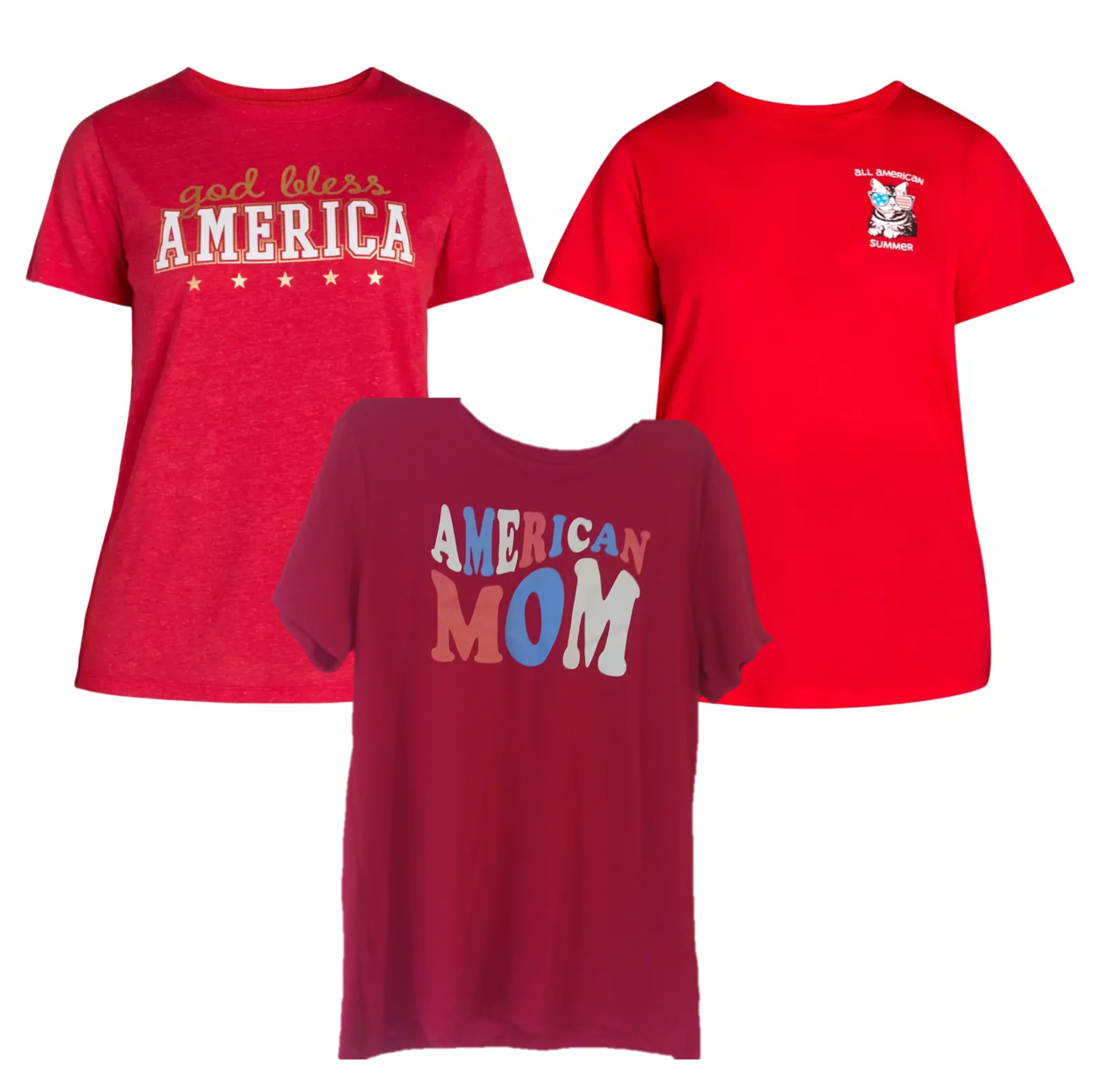NEW Women's God Bless America American Mom Large T-Shirt and All-American Summer XL T-Shirt