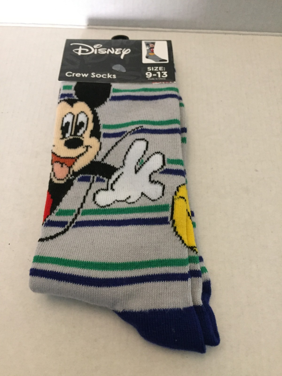 NEW Disney Mickey Mouse Striped Crew Socks Size 9-13