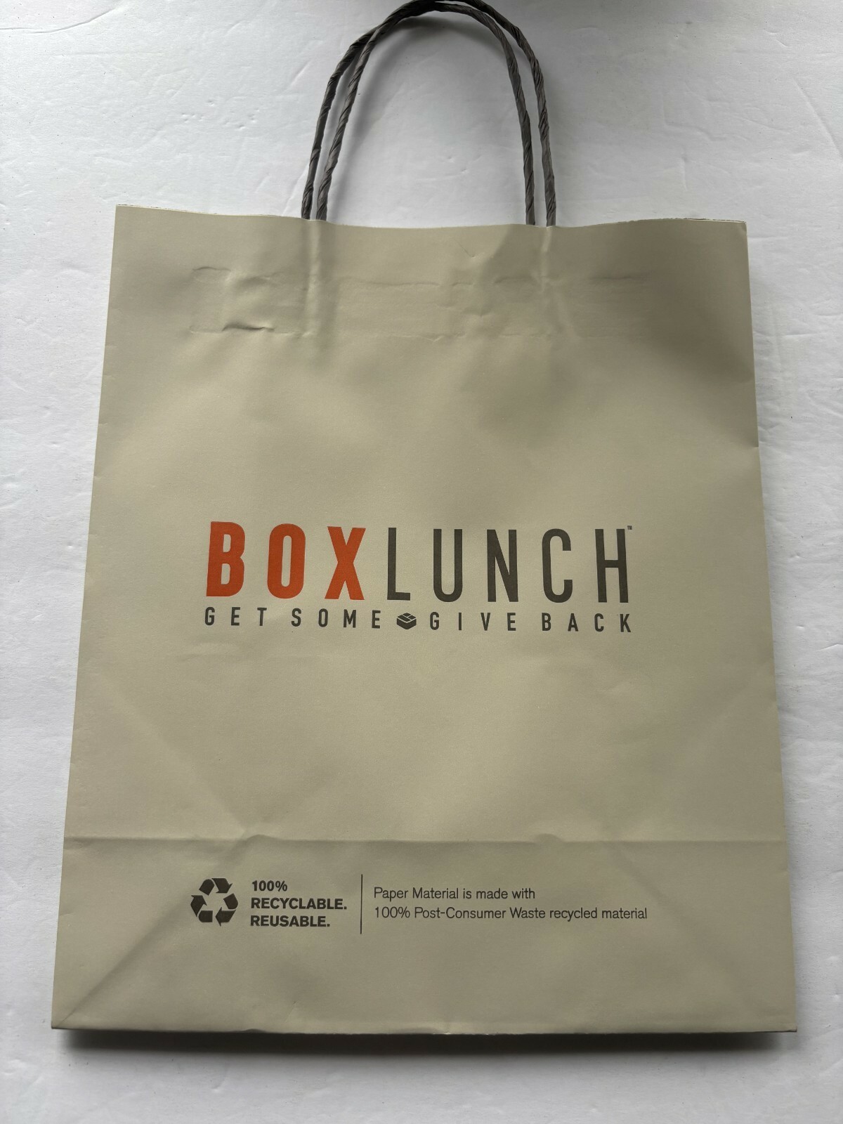 Box Lunch Reusable 12x10x5 Cardboard Bag. Not even used. Clean, and good.