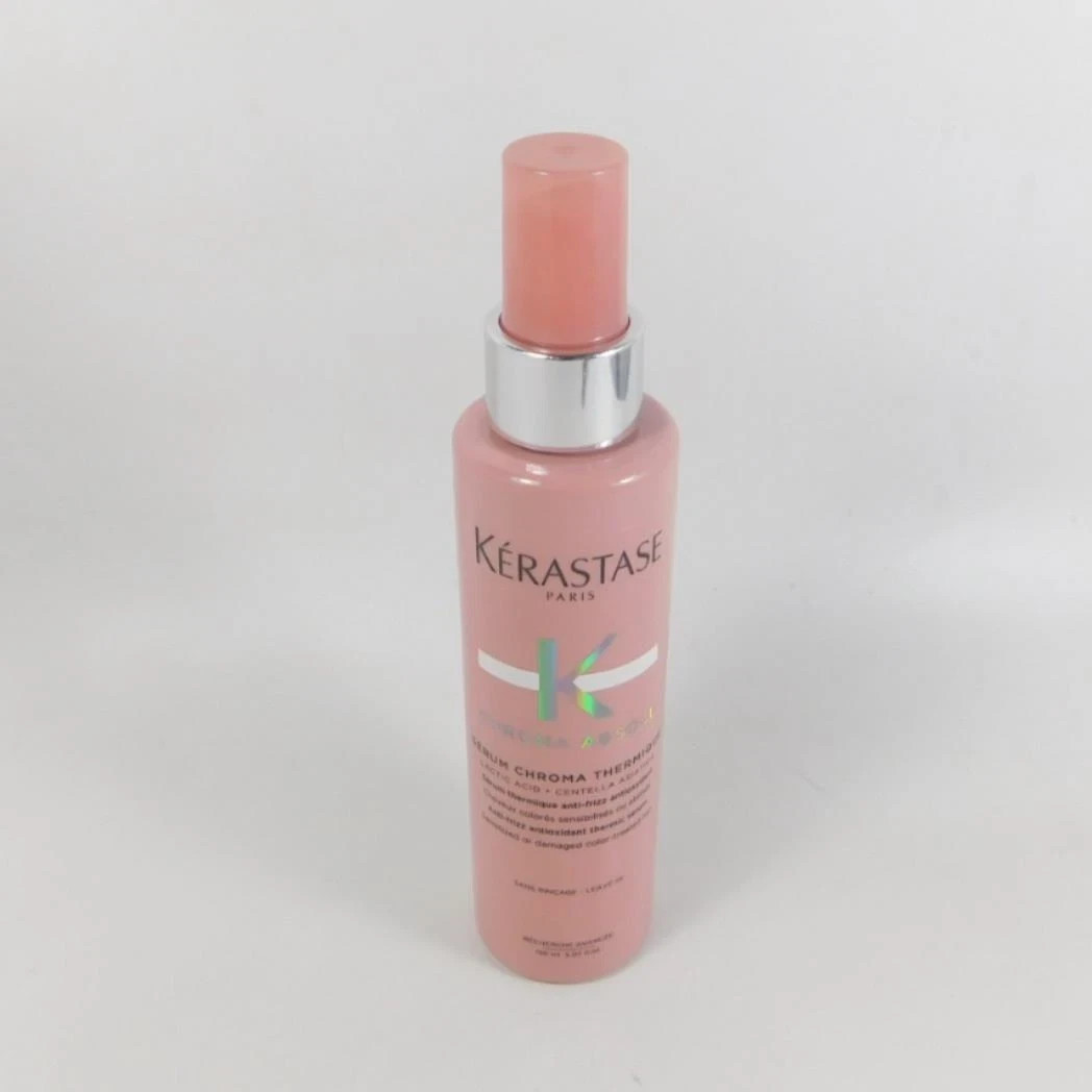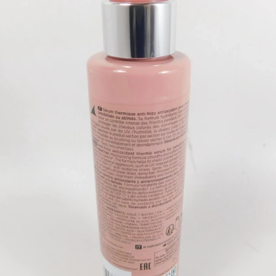 Elevate your color-treated hair care routine with Kerastase Chroma Absolu Serum Thermique, a lightweight, leave-in serum designed to protect and nourish sensitized or damaged color-treated hair. This multi-benefit serum defends hair against the damaging effects of heat styling up to 230C (450F), while sealing the hair fiber to reduce frizz, enhance shine, and preserve vibrant color.