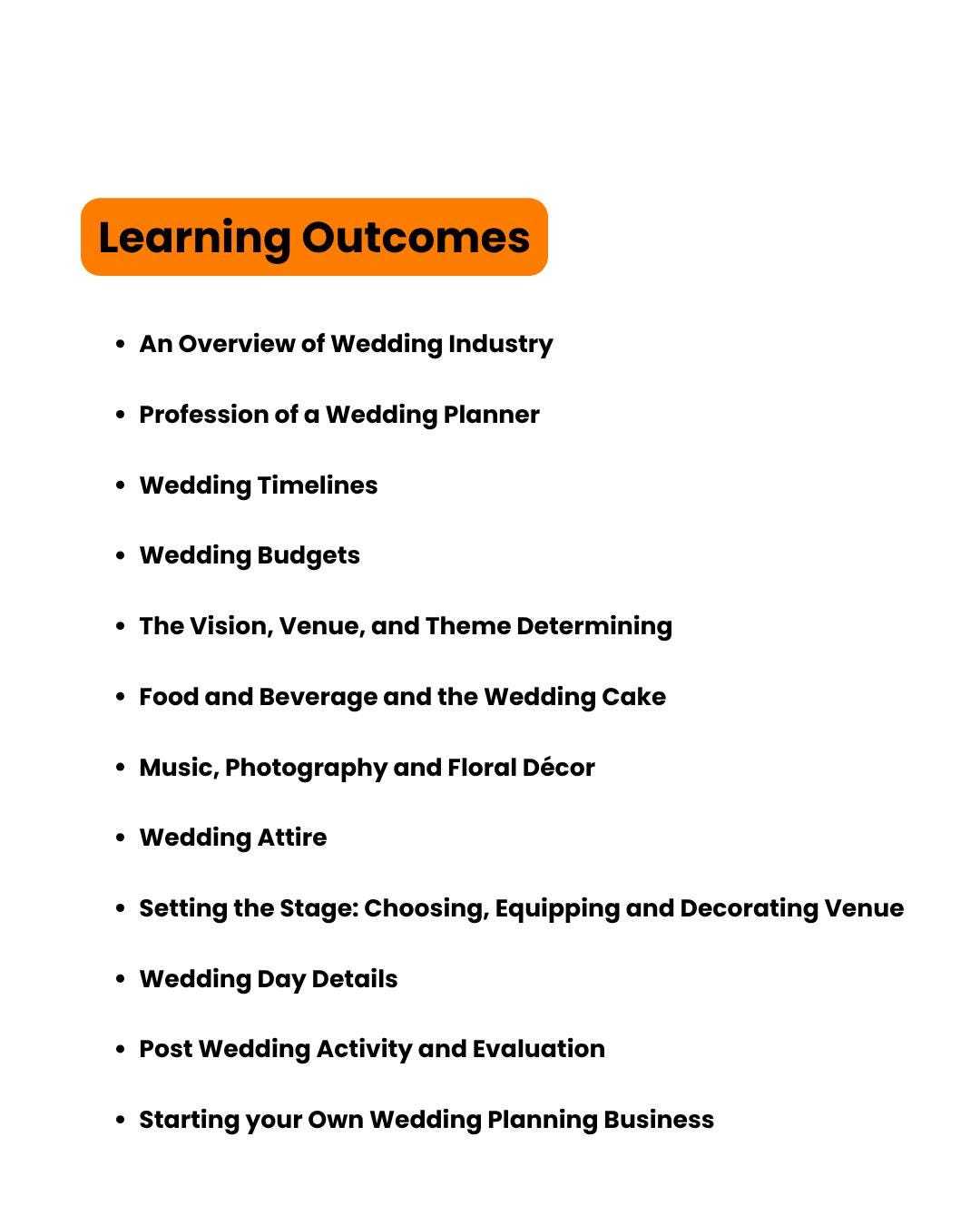 The detailed curriculum outline of our Wedding Planner is as follows: