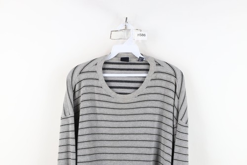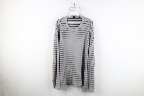 Vintage 90s Gap Mens XL Striped Thermal Waffle Knit Long Sleeve T-Shirt Gray