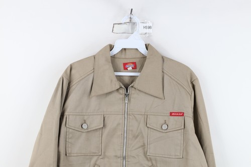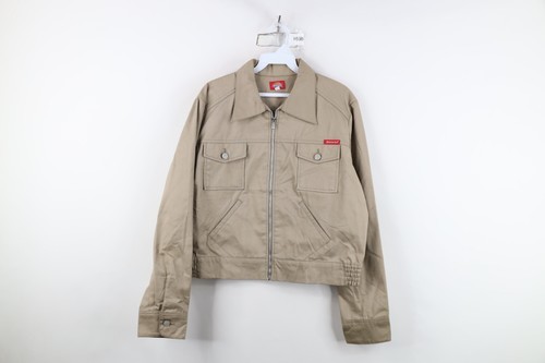 Vintage 90s Dickies Girls XL Spell Out Cotton Twill Zip Trucker Jacket Beige