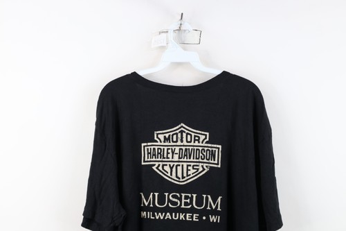 Vintage Y2K Harley Davidson Museum Mens 2XL XXL Faded Spell Out T-Shirt Black