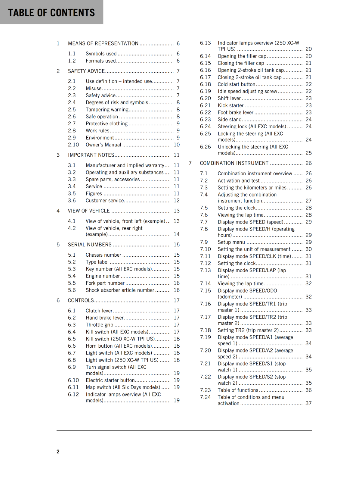 KTM 2018 - 250 300 EXC SIX DAYS XC-W TPI - OWNERS MANUAL USER GUIDE