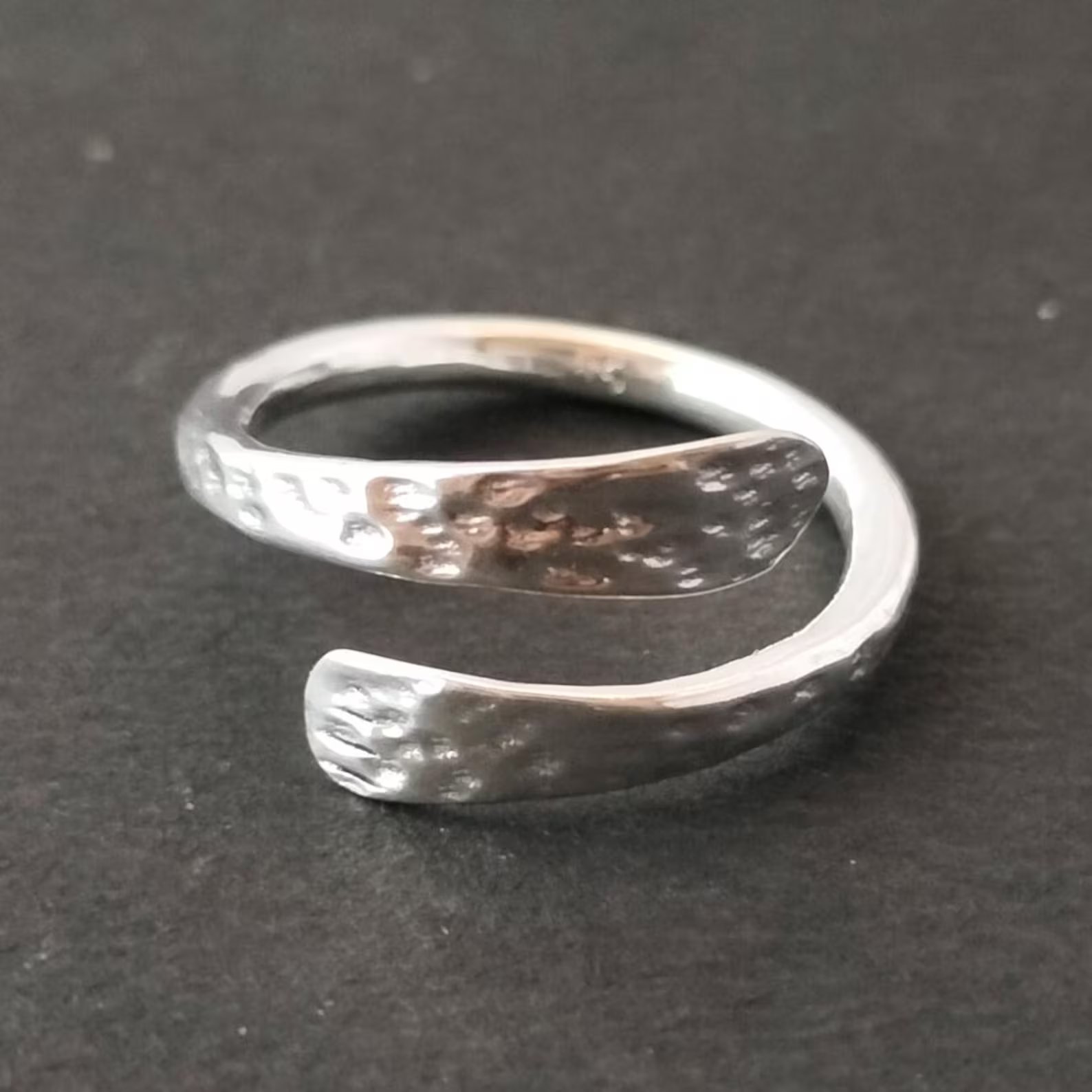 925 Sterling Silver, Solid Silver, Band Ring, Hammer Bypass Band Ring