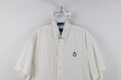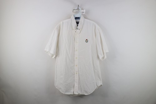 Vtg 90s Chaps Ralph Lauren Mens L Crest Short Sleeve Collared Button Down Shirt