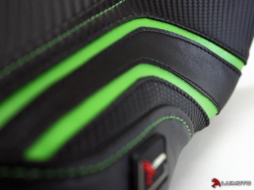 Maximize the style of your ER6F with the Team Kawasaki seat cover. The seat cover features sleek angular design elements to perfectly compliment your Ninja.
