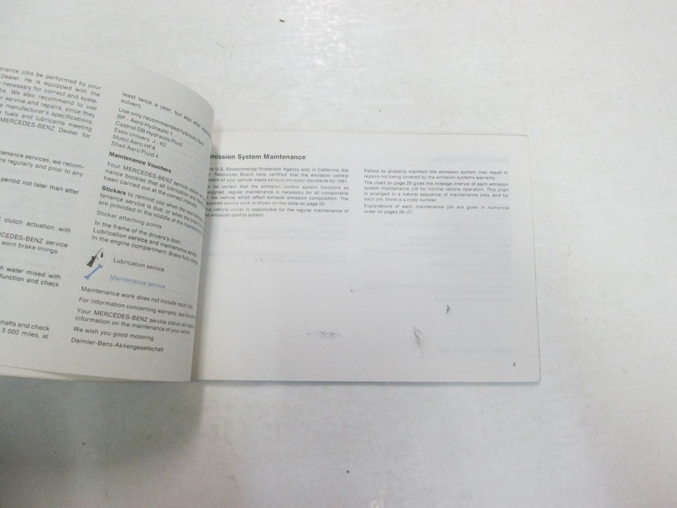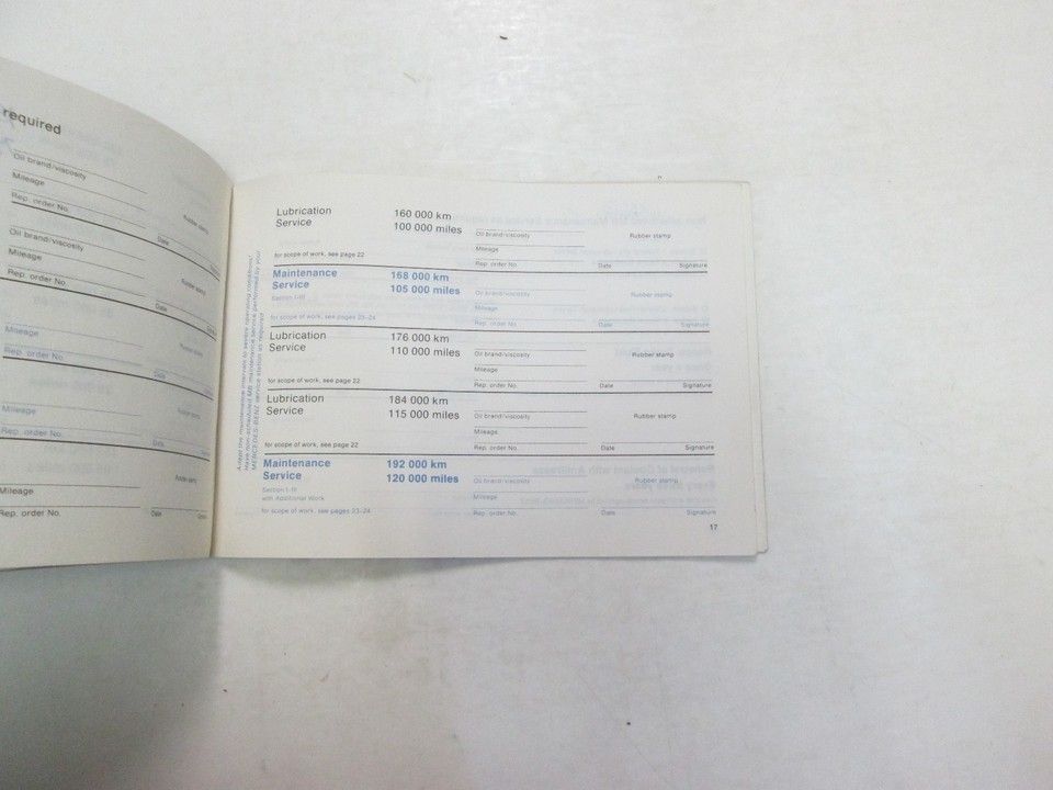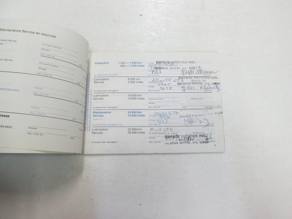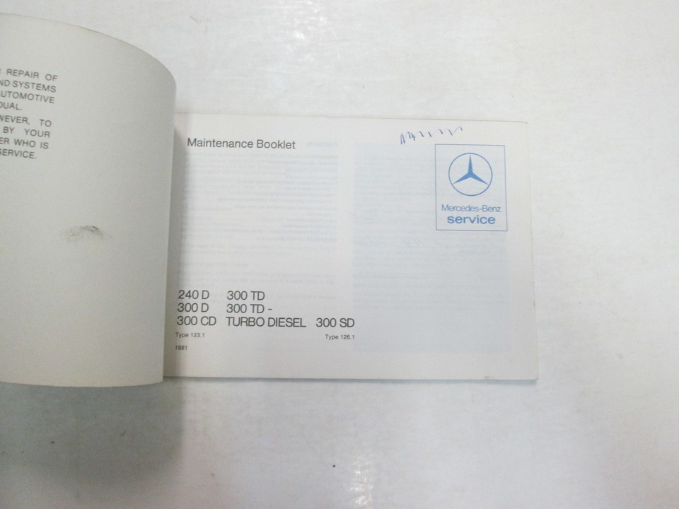 1982 MERCEDES BENZ PASSENGER CARS W/ DIESEL ENGINE MAINTENANCE BOOKLET WEAR