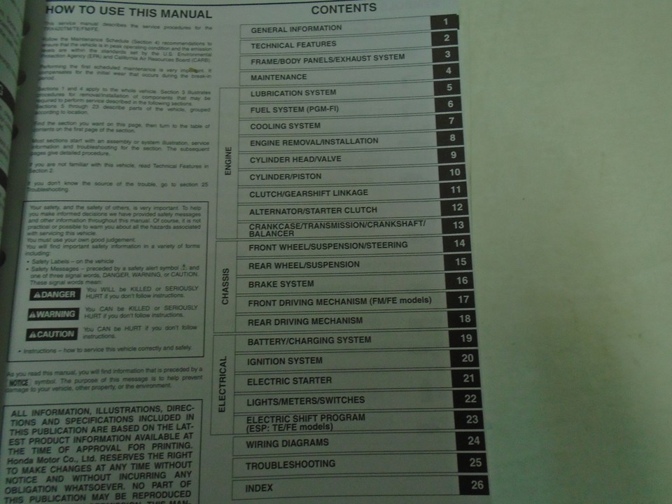 2009 2010 Honda TRX420FE FM TE TM Fourtrax Rancher Service Manual OEM 61HP701