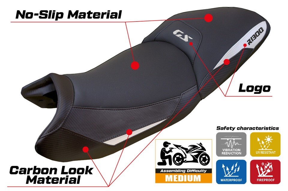 BMW R1300GS 2023 2024 2025 Touring Seat Cover Tappezzeria White Black