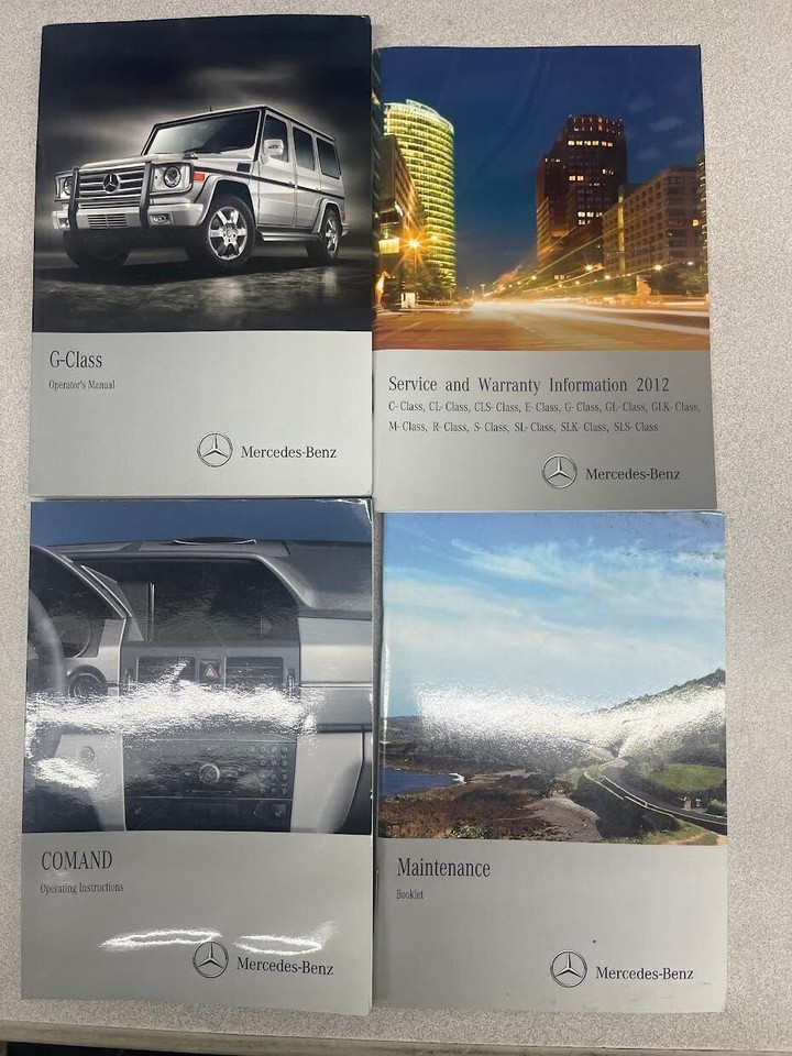 2012 MERCEDES G CLASS MODELS OPERATORS OWNERS MANUAL KIT WITH CASE AND MANUALS. This manual is published by MERCEDES, and are the same manuals that come with the vehicle with purchase We will leave POSITIVE Feedback after we receive your payment. Please do not forget to give us POSITIVE Feedback and FIVE Stars on all of the Detailed Seller Ratings! If you are not satisfied with your shopping Experience, please contact us to get a solution before you decide to leave a NEUTRAL or a NEGATIVE Feedback, We will do our best to solve any problems for you as soon as possible. We will provide you with the BEST POSSIBLE service because the POSITIVE Feedback and FIVE Stars are what we are striving for. Please email me through "My Messages" or "Ask Seller Questions" if you have any question about ou
