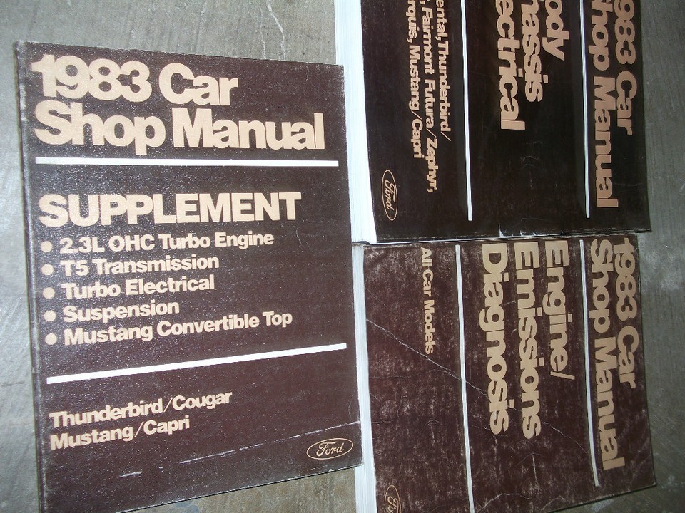 FACTORY 1983 Ford MUSTANG/Capri factory body/chassis/electrical service manual, service manual supplement, and the emission diagnosis engine electronics manual