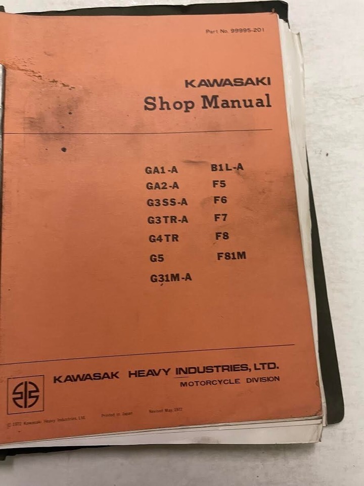 1972 Kawasaki F5 F6 F7 F8 GA1 GA2 G3SS G3 Service Shop Manual Set 99995-201 WITH GUIDE