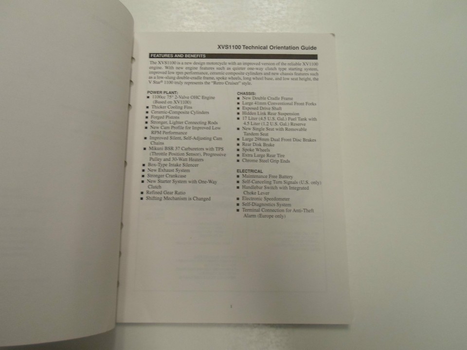 1999 YAMAHA XVS1100 TECHNICAL ORIENTATION GUIDE MANUAL