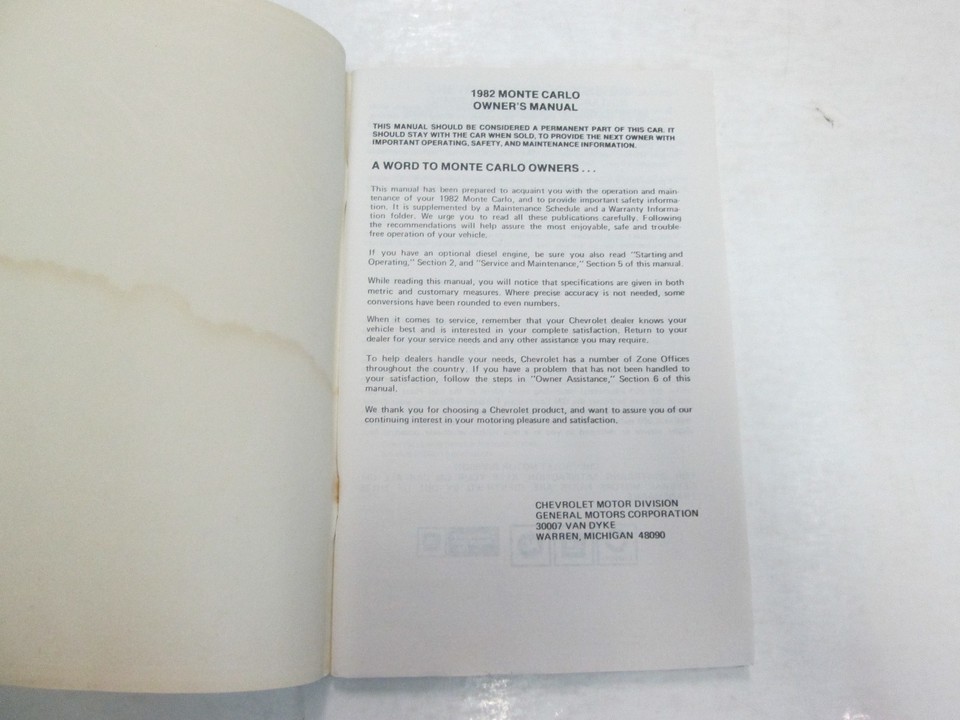 1982 CHEVROLET MONTE CARLO OWNERS MANUAL OPERATING SAFETY MAINTENANCE WATER DAMAGED