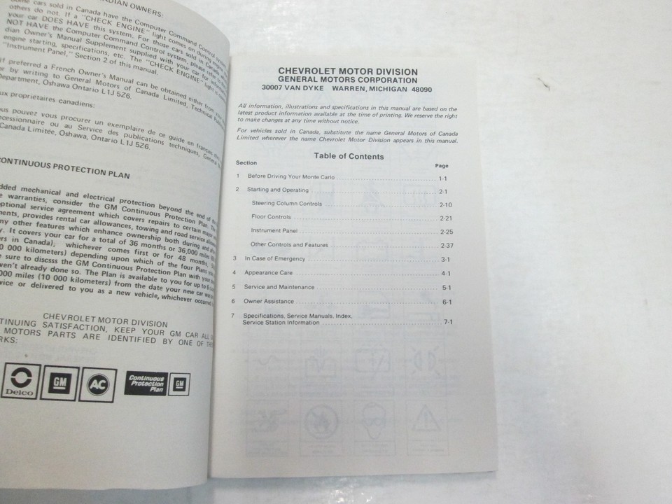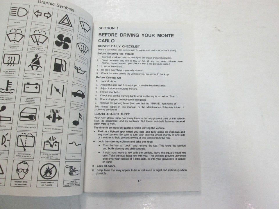 1982 Chevrolet Monte Carlo Owners Manual and similar items