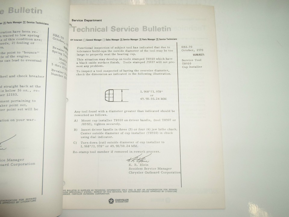 1970 Chrysler Outboartd Service Bulletin and 48 similar items