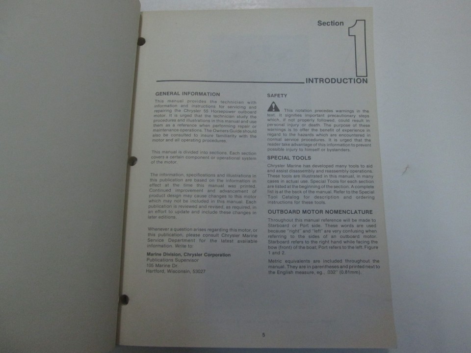 1981 1982 Chrysler Outboard 55 H.P. Outboard Motor Service Manual OEM OB3788
