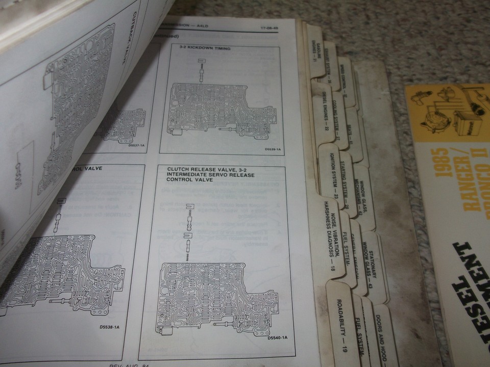 FACTORY 1985 Ford RANGER/BRONCO II Service Manual, Technical Service Bulletin Index Manual Diesel Wiring Diagrams,and the Electrical and Vacuum Troubleshooting Manual