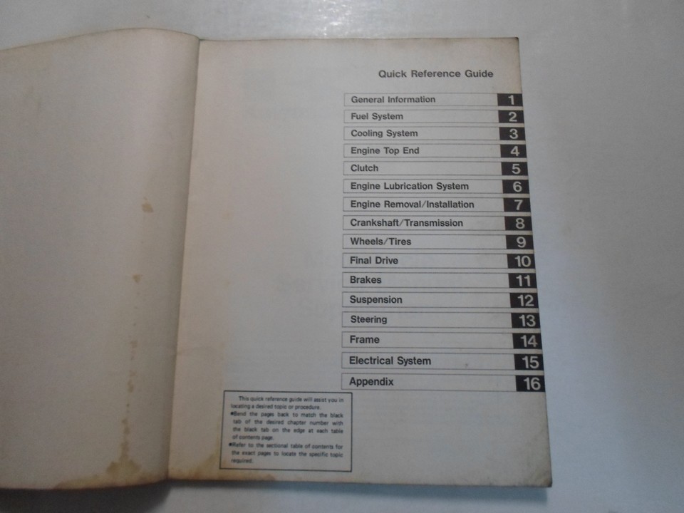 COVERS LIMITED INFORMATION, no missing pages, exploded illustrations and/or diagrams, great manual to have when you own Kawasaki. This manual will save you money in Repairs/Service.
