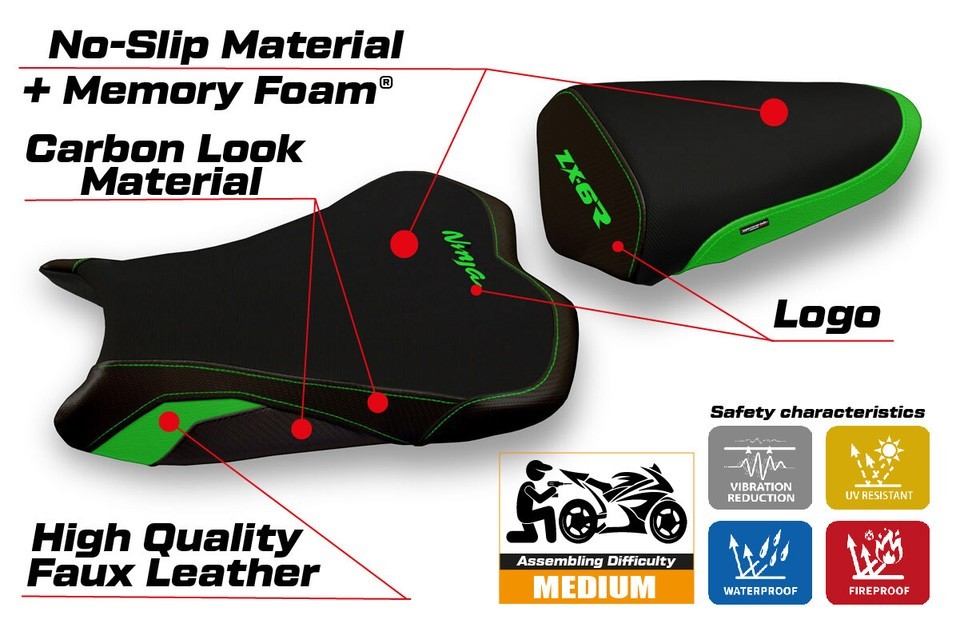 Kawasaki Ninja ZX6R 2013-2016 2017 2018 Seat Cover Tappezzeria Comfort Green