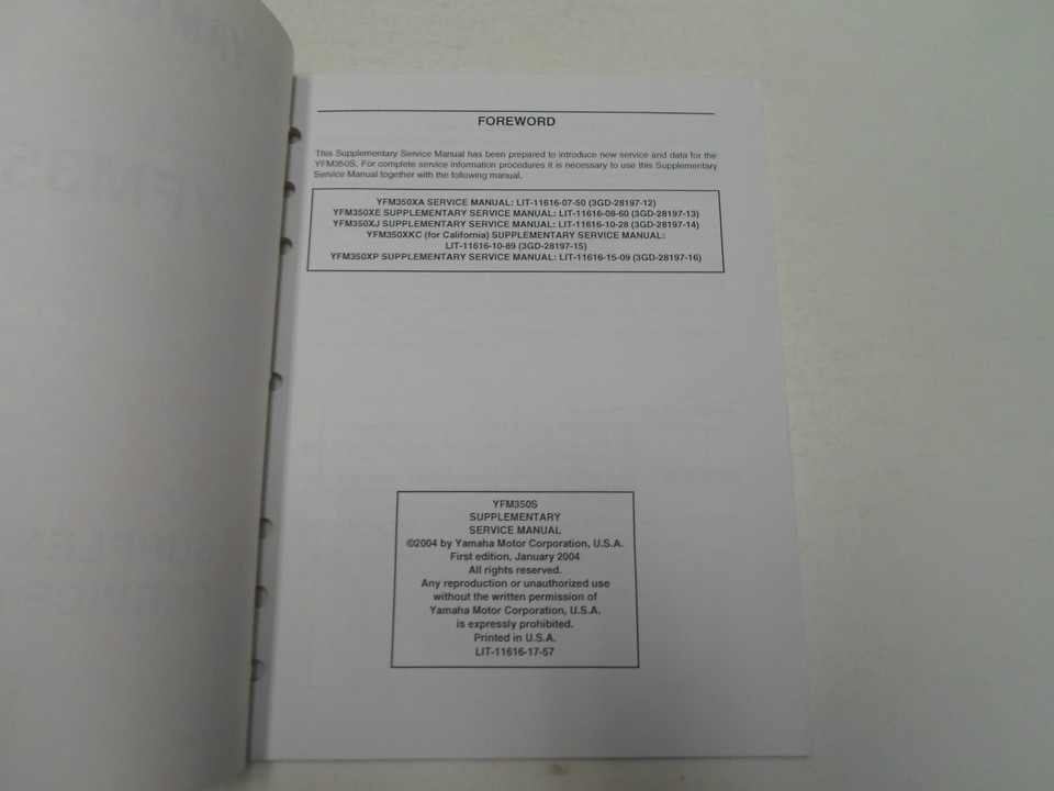 2005 Yamaha YFM350S Supplementary Service and 42 similar items