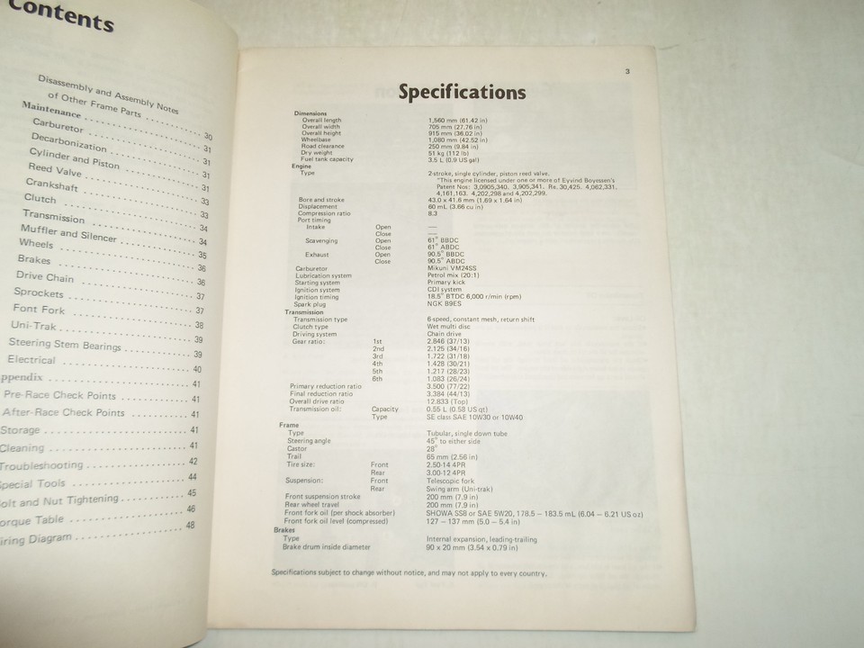 1983 KAWASAKI KX60 MOTORCYCLE OWNEDERS Manual Service Manual Water endommage