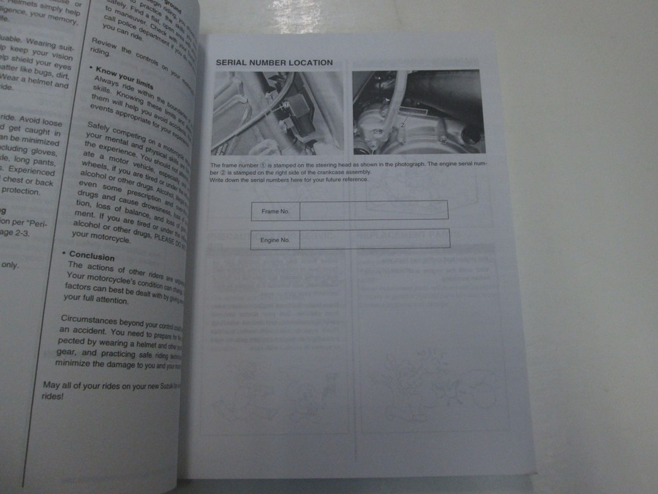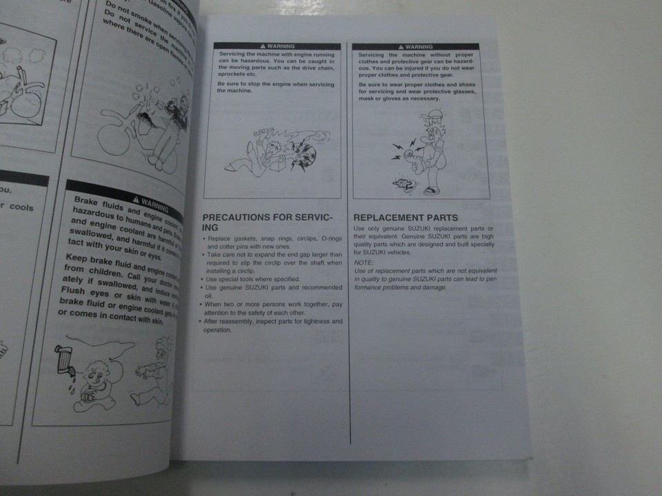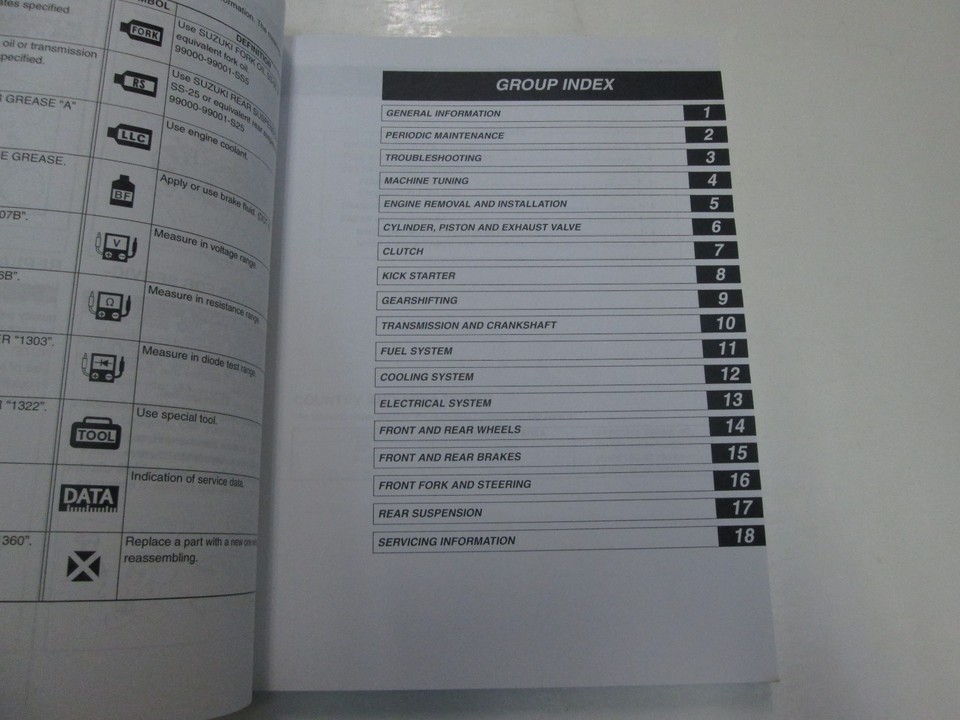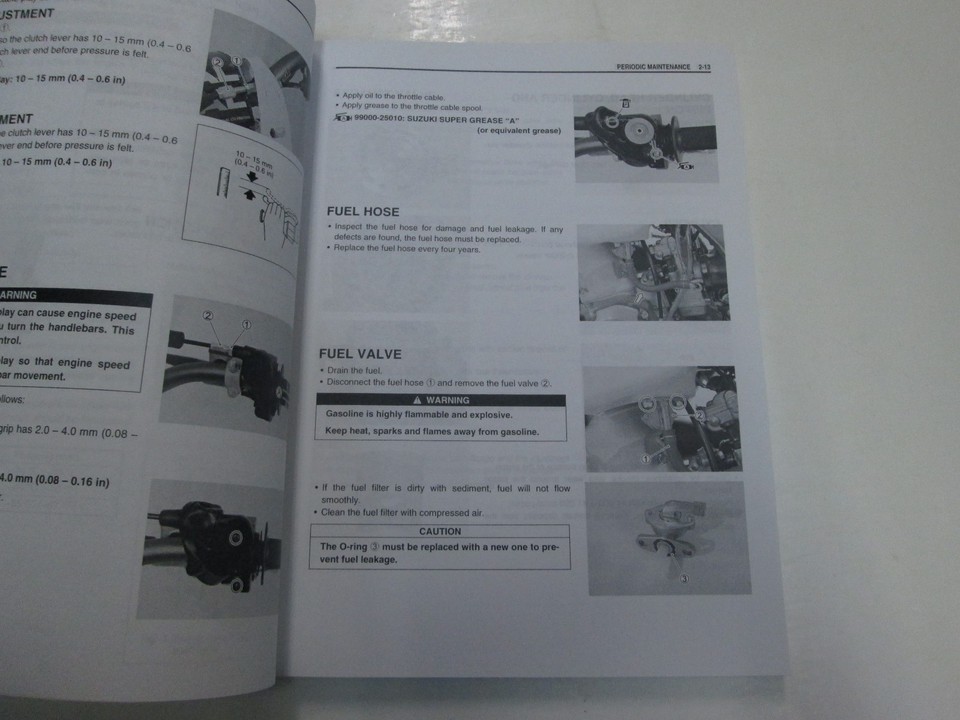 Full of information and illustrations, covers everything, step by step instructions, assembly/dis-assembly, exploded illustrations/diagrams/troubleshooting, great manual to have when owning/servicing a SUZUKI and will be a great aid to keep your SUZUKI on the road. This manual will save you money in repairs/service. A must have if you own one of these vehicles.