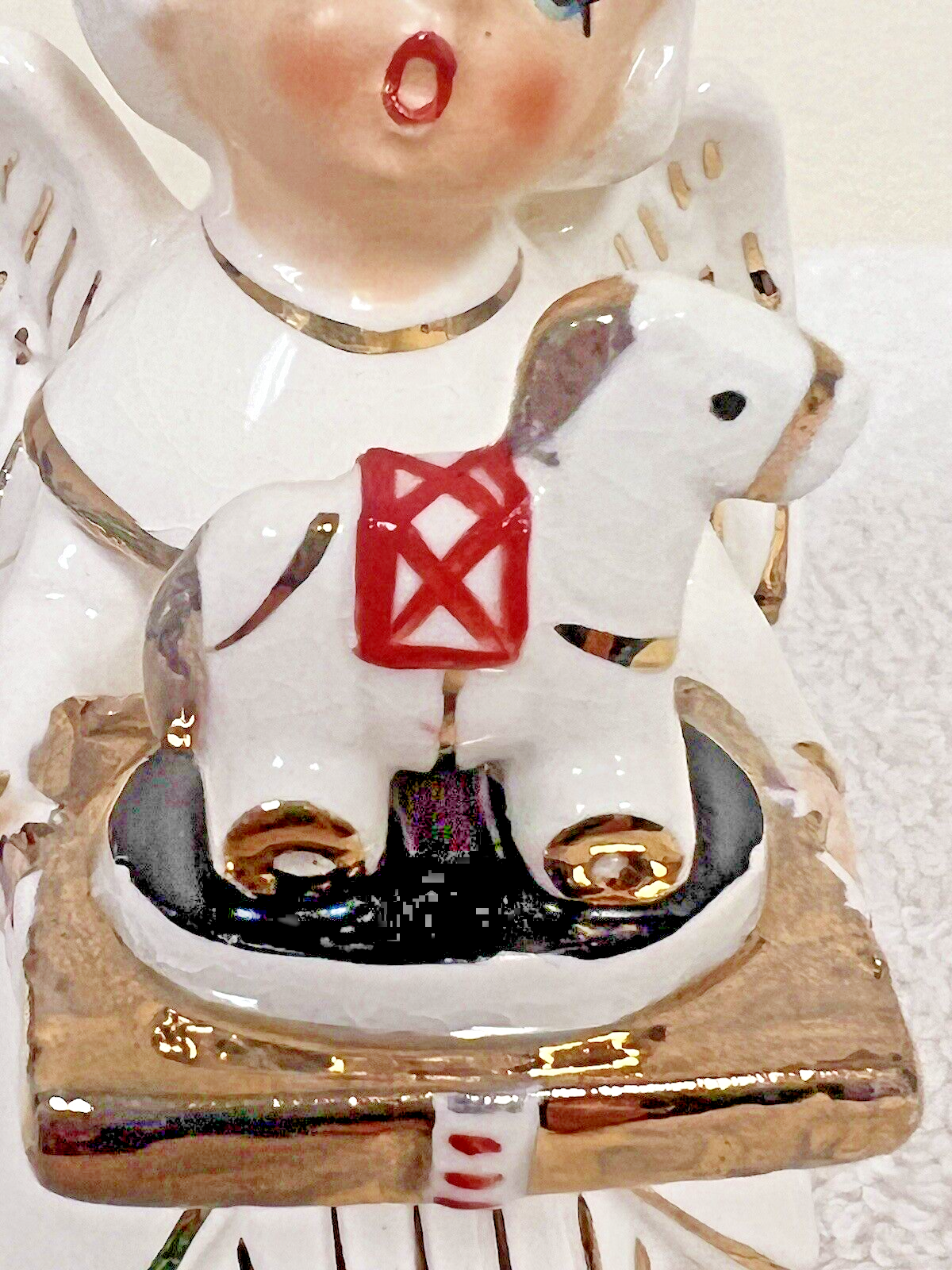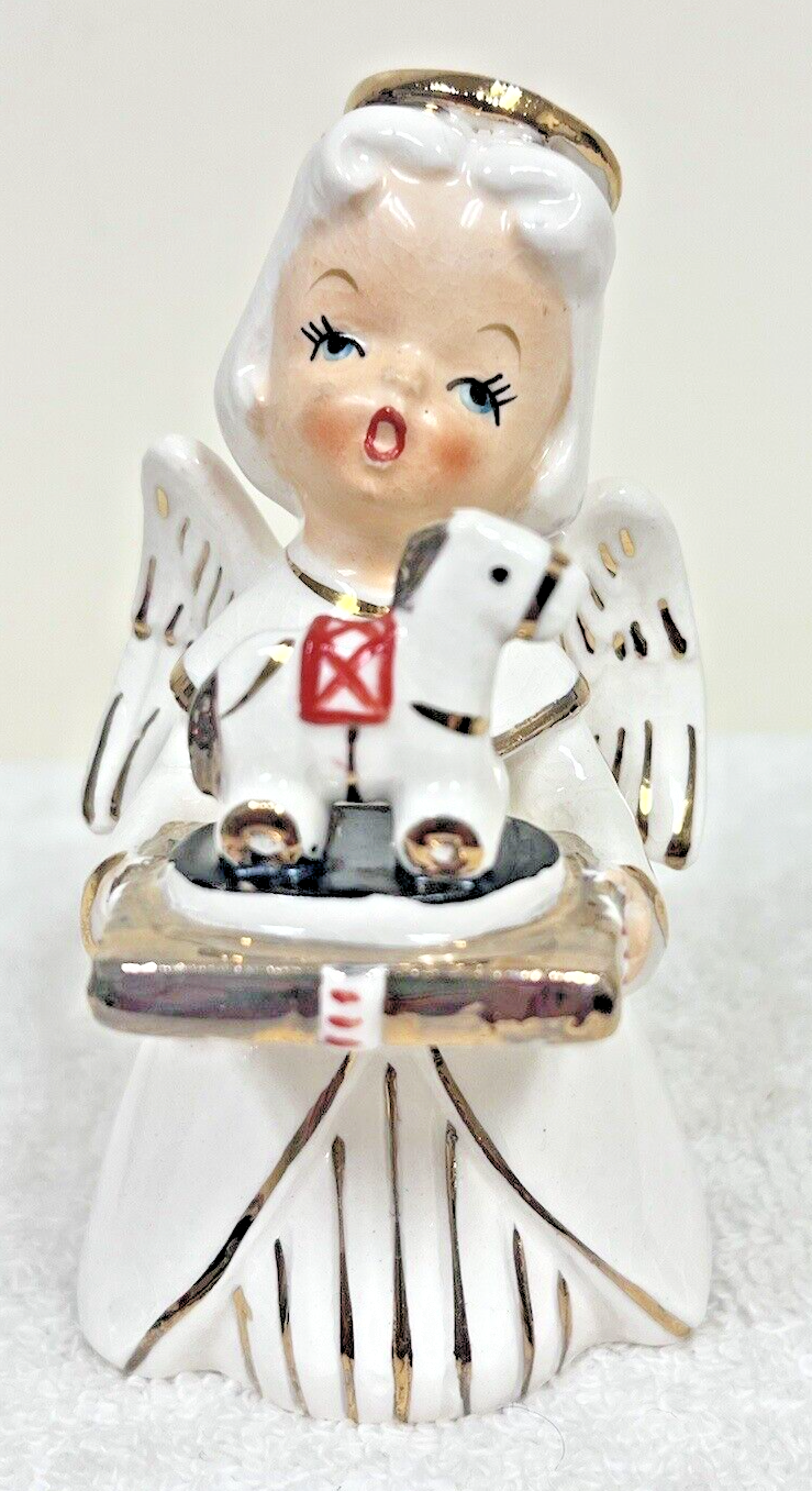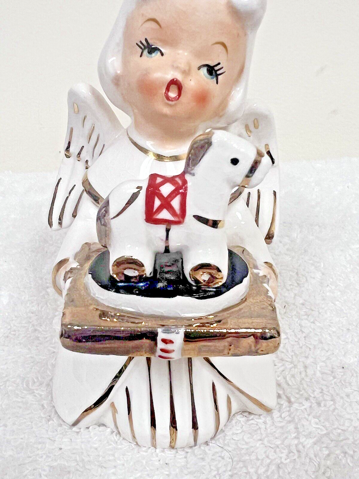 Napco S5720 Angel w Gift on Tray Little Horse on Wheels Toy 4 1/2" Nice Shape no chips or breaks