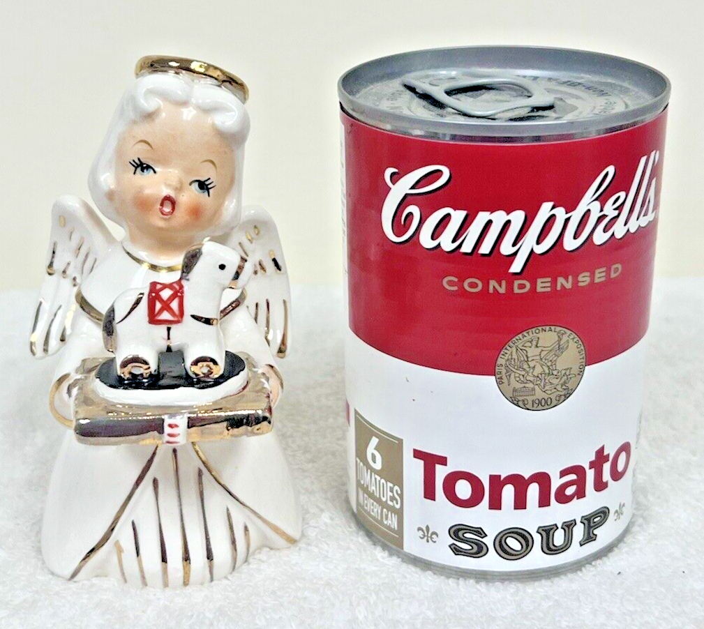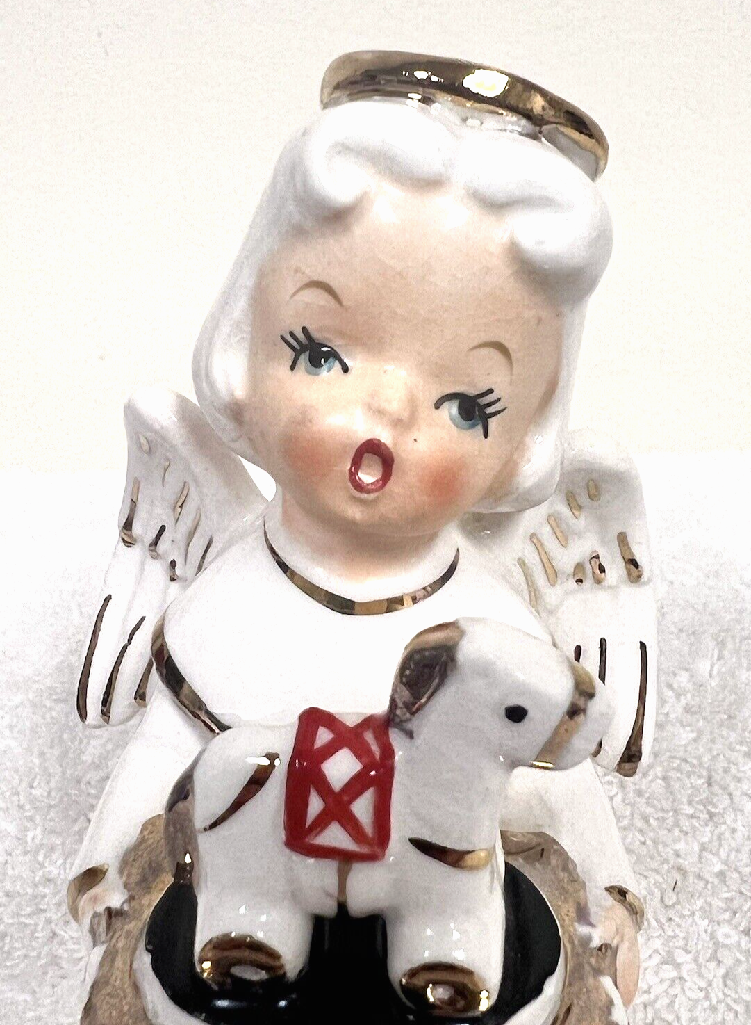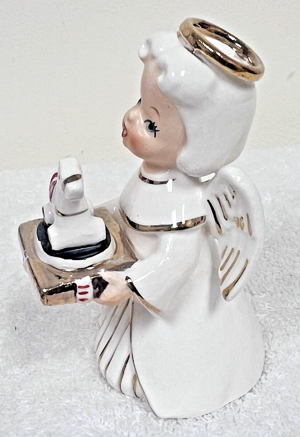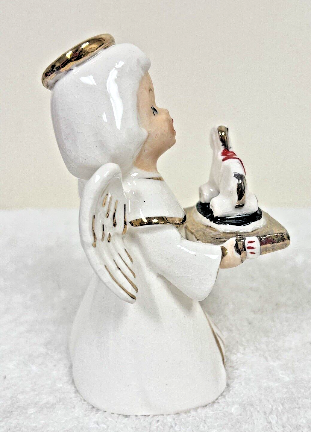 Napco S5720 Angel w Gift on Tray Little Horse on Wheels Toy 4 1/2" Nice Shape no chips or breaks