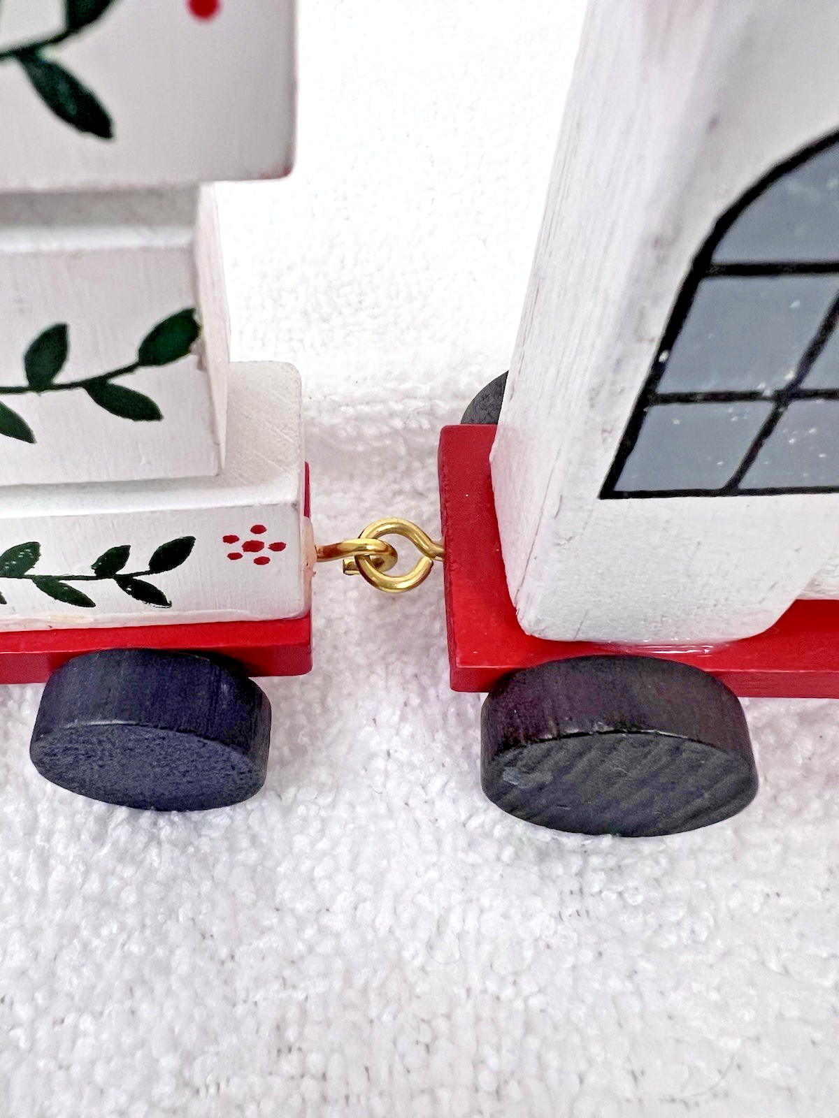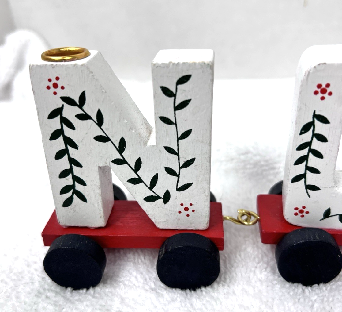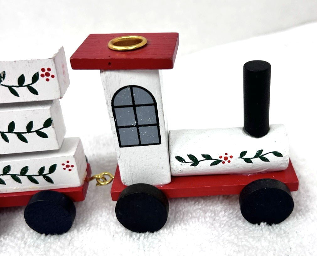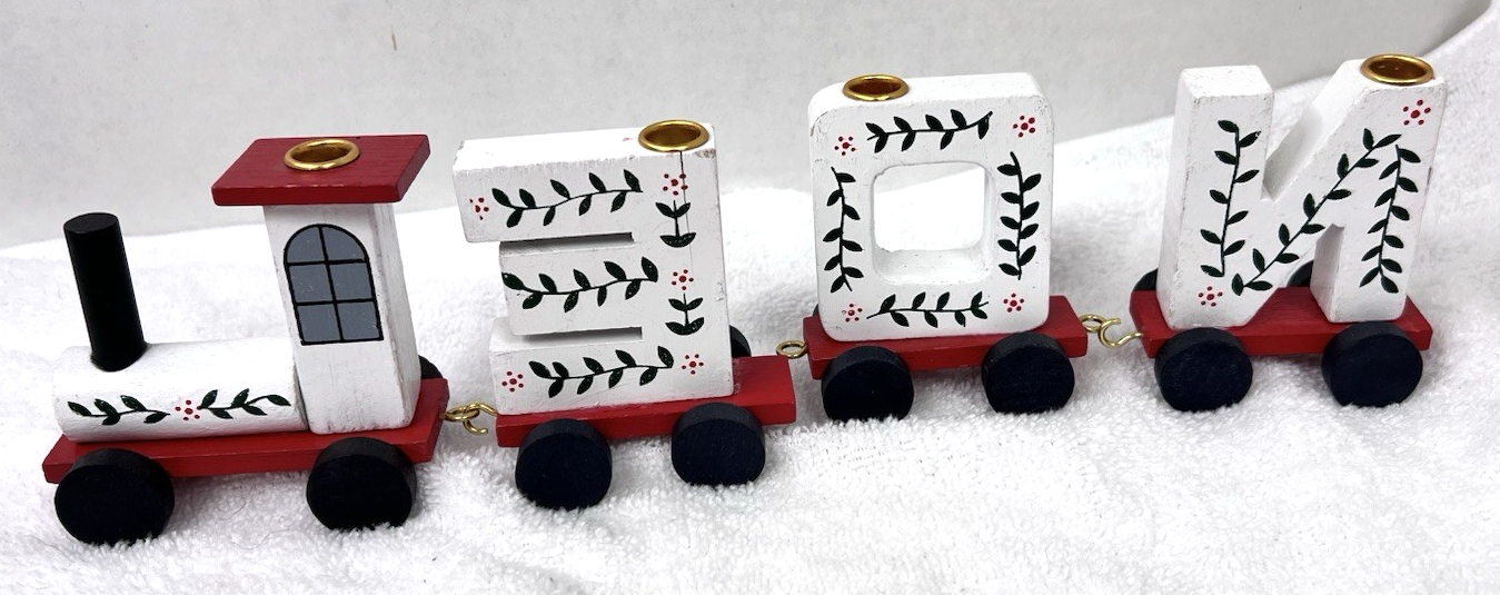 Vintage Lego Wood NOEL Christmas Train Candle Holder Hand Painted w Garlands added to cart.