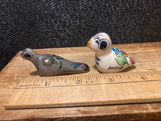Lot of 2 Vtg Tonala Mini SMALL Pottery Birds Mexican Hand Painted Ceramic