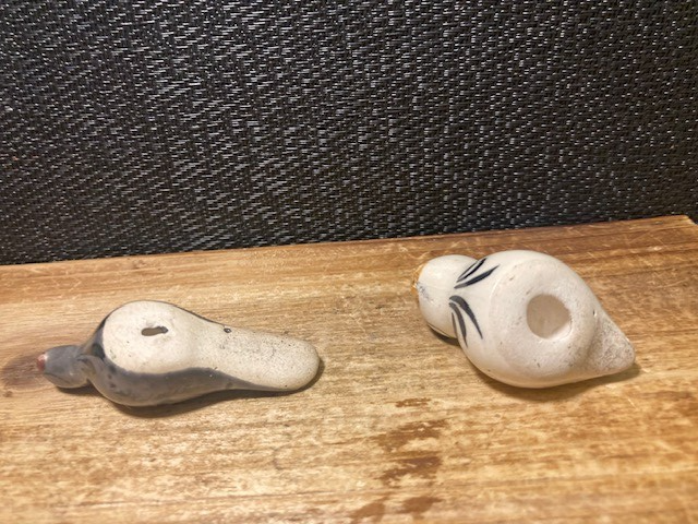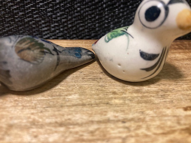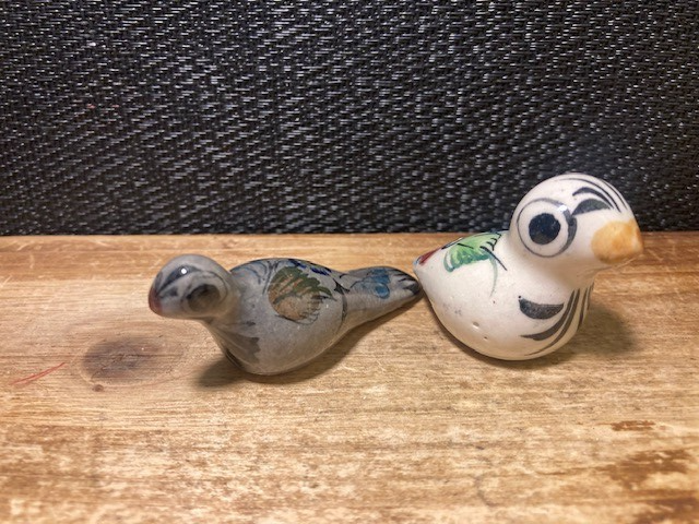 Lot of 2 Vtg Tonala Mini SMALL Pottery Birds Mexican Hand Painted Ceramic Very good. Please note small holes manufactured in white bird. Please refer to images.