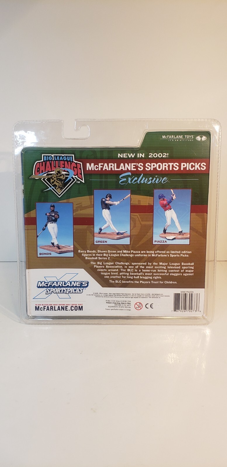This Mike Piazza action figure is a must-have for any baseball fan. Standing at 6 inches tall, this exclusive McFarlane MLB Big League Challenge figure is made of high-quality ABS plastic and features a 1:12 scale. The item is an original, licensed reproduction and comes in its original, unopened packaging.The figure depicts Mike Piazza, a renowned professional baseball player who played for the Los Angeles Dodgers NY Mets. It is a great addition to any collection and perfect for display.