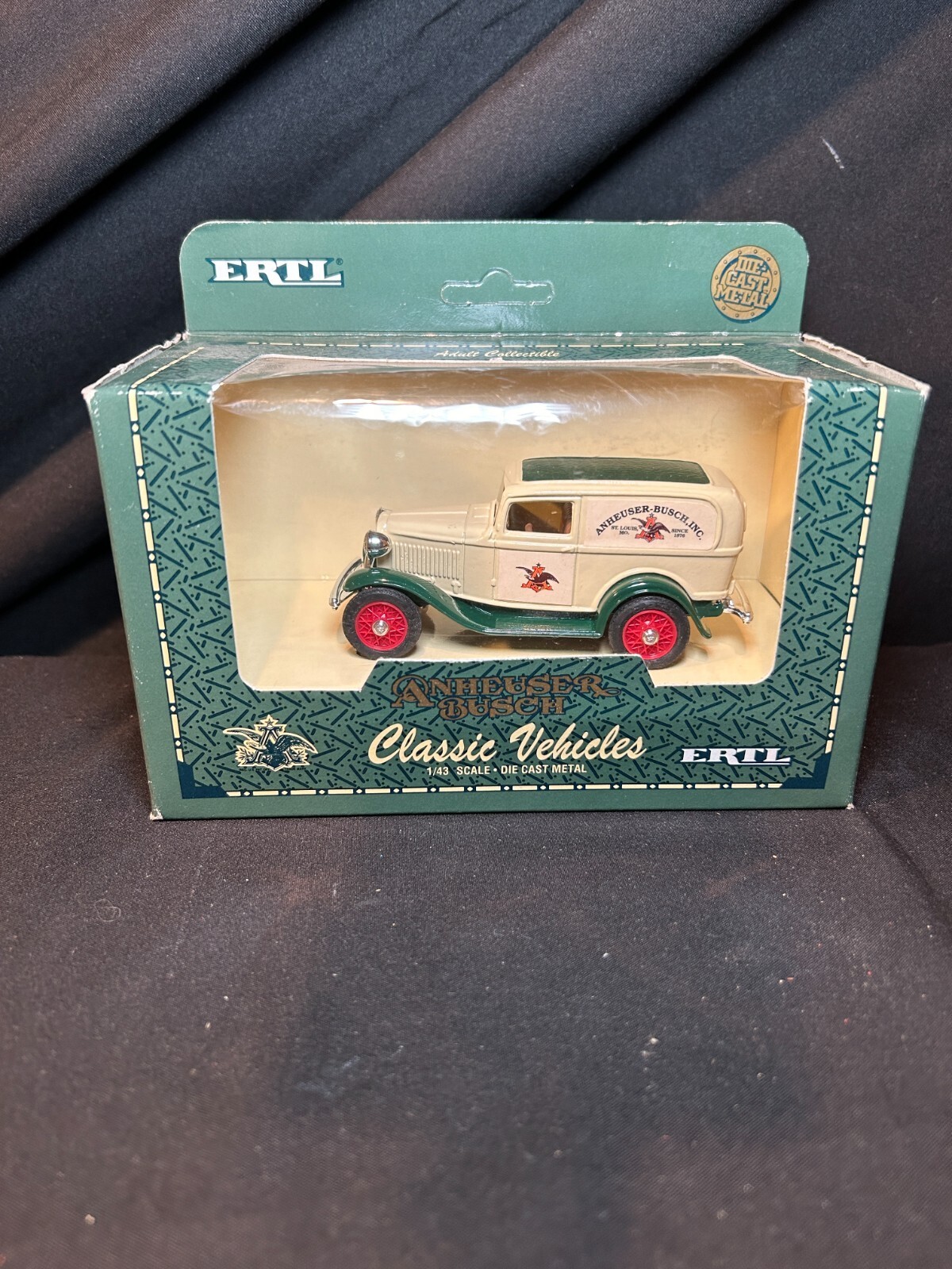 Ideal for Anheuser-Busch memorabilia collectors, Ertl diecast enthusiasts, or fans of vintage delivery trucks, this boxed set makes a standout display or thoughtful gift.
