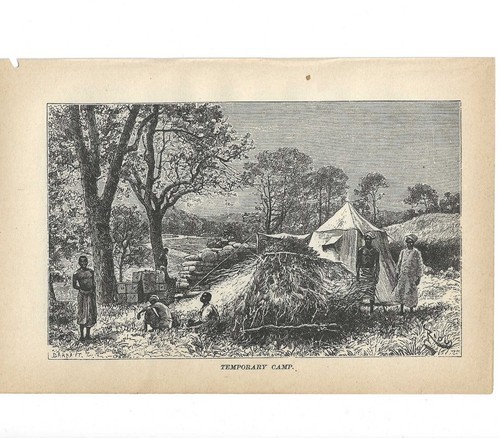 Temporary Camp In Africa 1889 Victorian Print Henry Stanley 1st Edition DWV1B