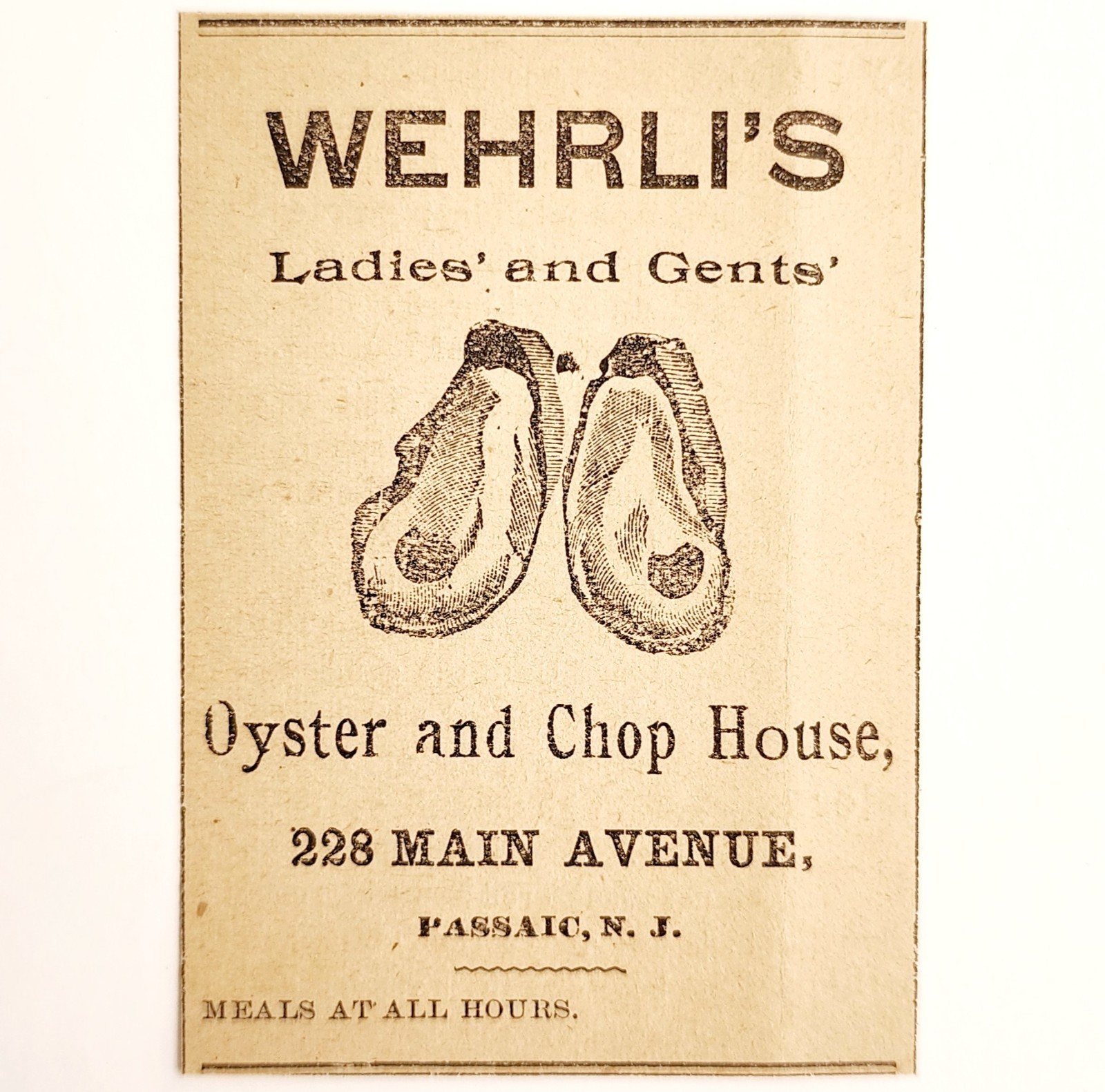 1895 Wehrli's Restaurant Victorian Advertisement Oyster Chop House Passaic F13L